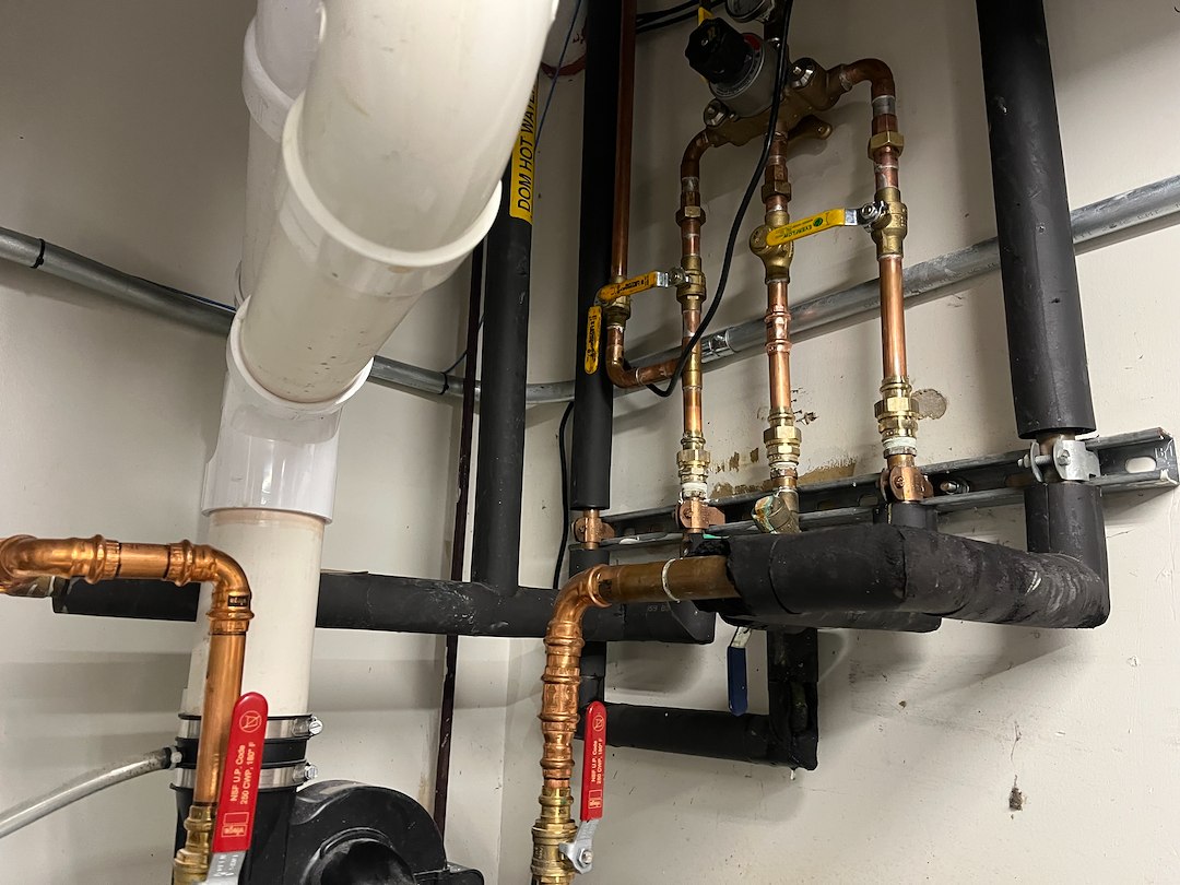 The defective TMV had begun to affect regulated water temperatures throughout the building. Because thermostatic mixing valves control the balance of hot and cold water, a failure can lead to unsafe temperatures at fixtures and problems with the building's overall water system. Our commercial plumbing work focused on restoring consistent, safe water temperatures so building occupants and operations would not be at risk.